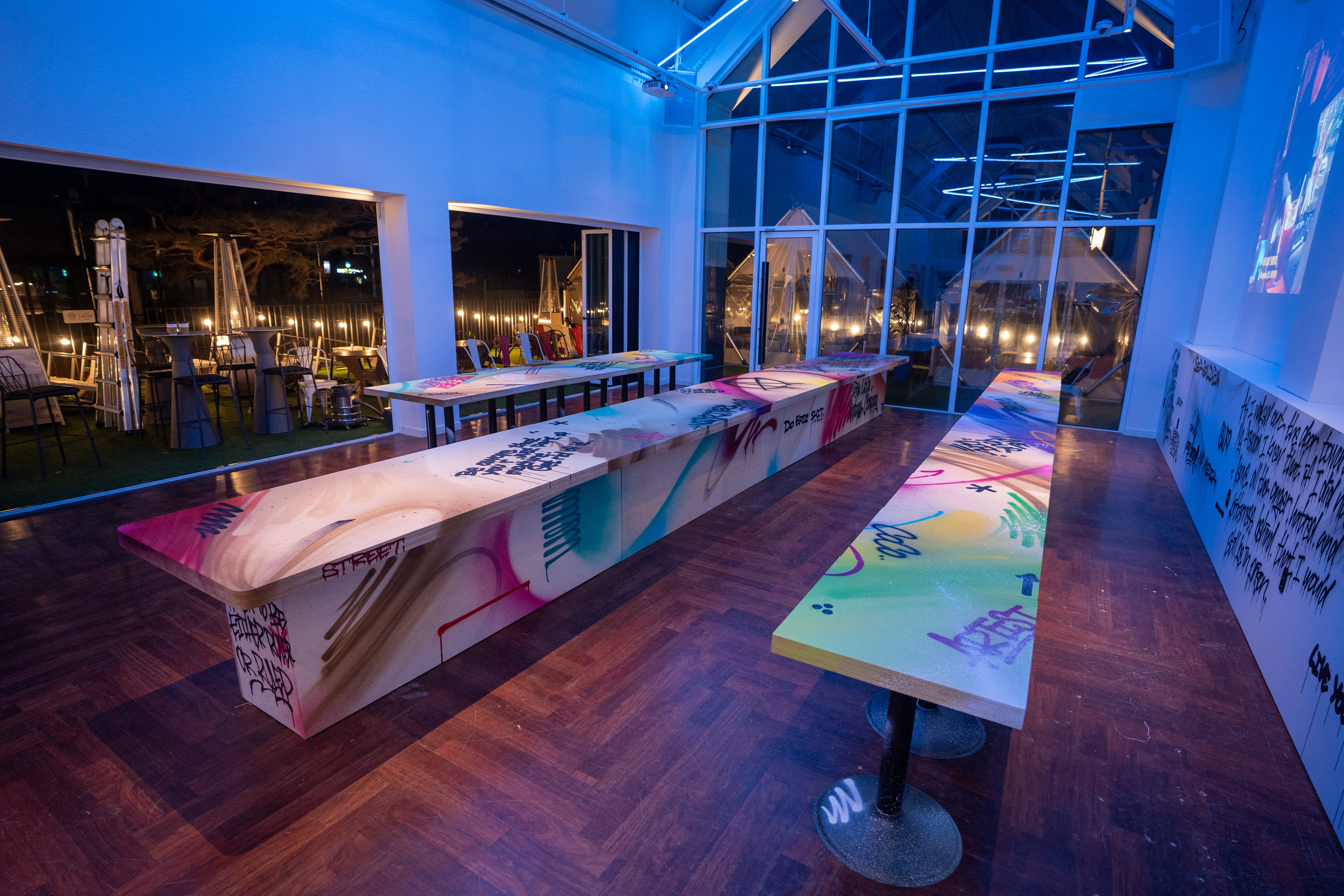 A stylish venue that seamlessly transitions from a spacious, aesthetic cafe during the day to a cocktail lounge and bar at night. Pyeongtaek, Korea 2025