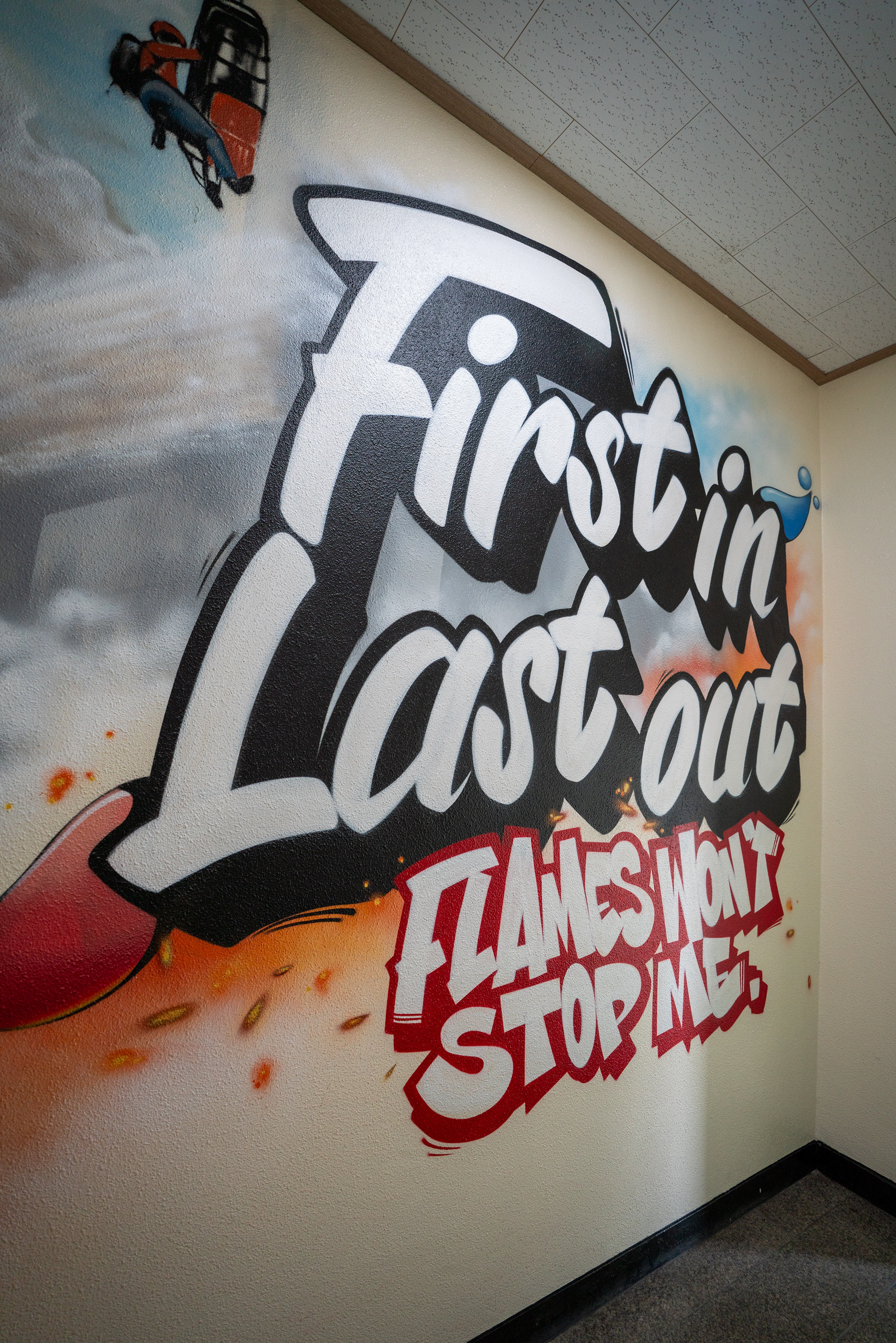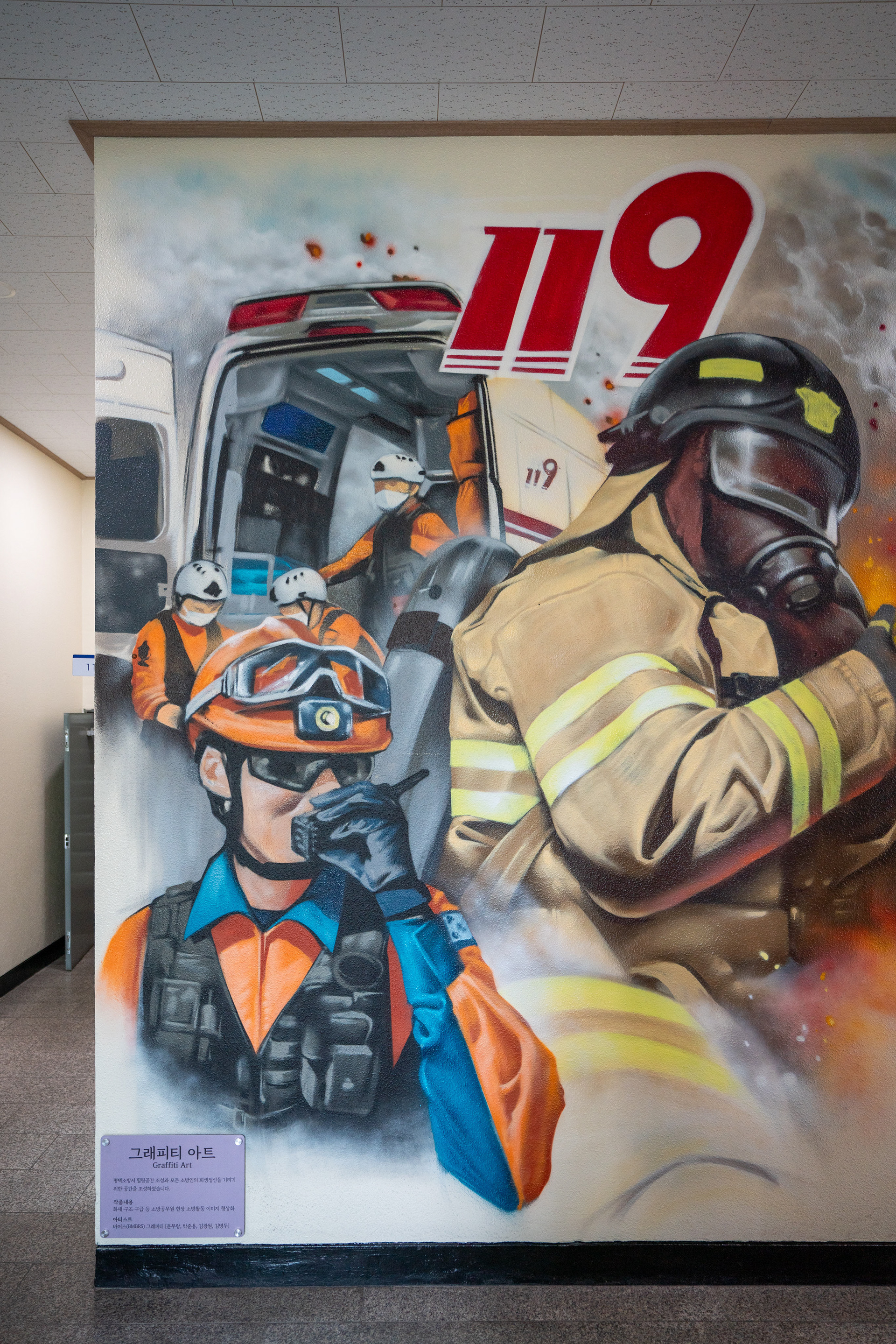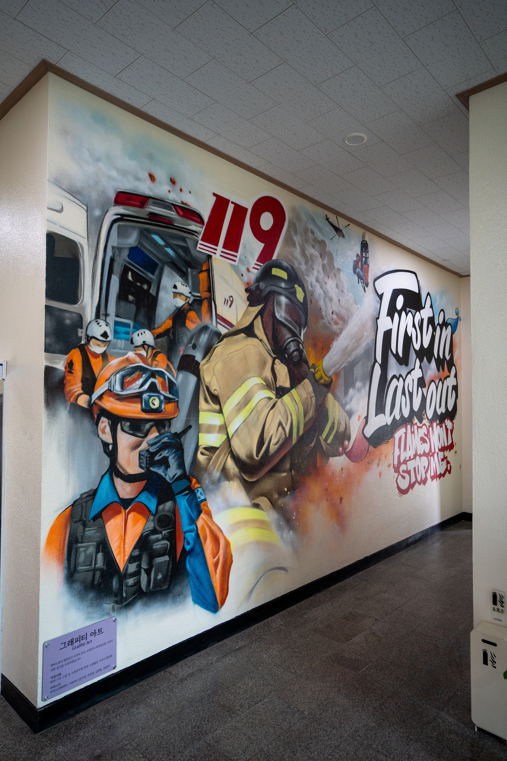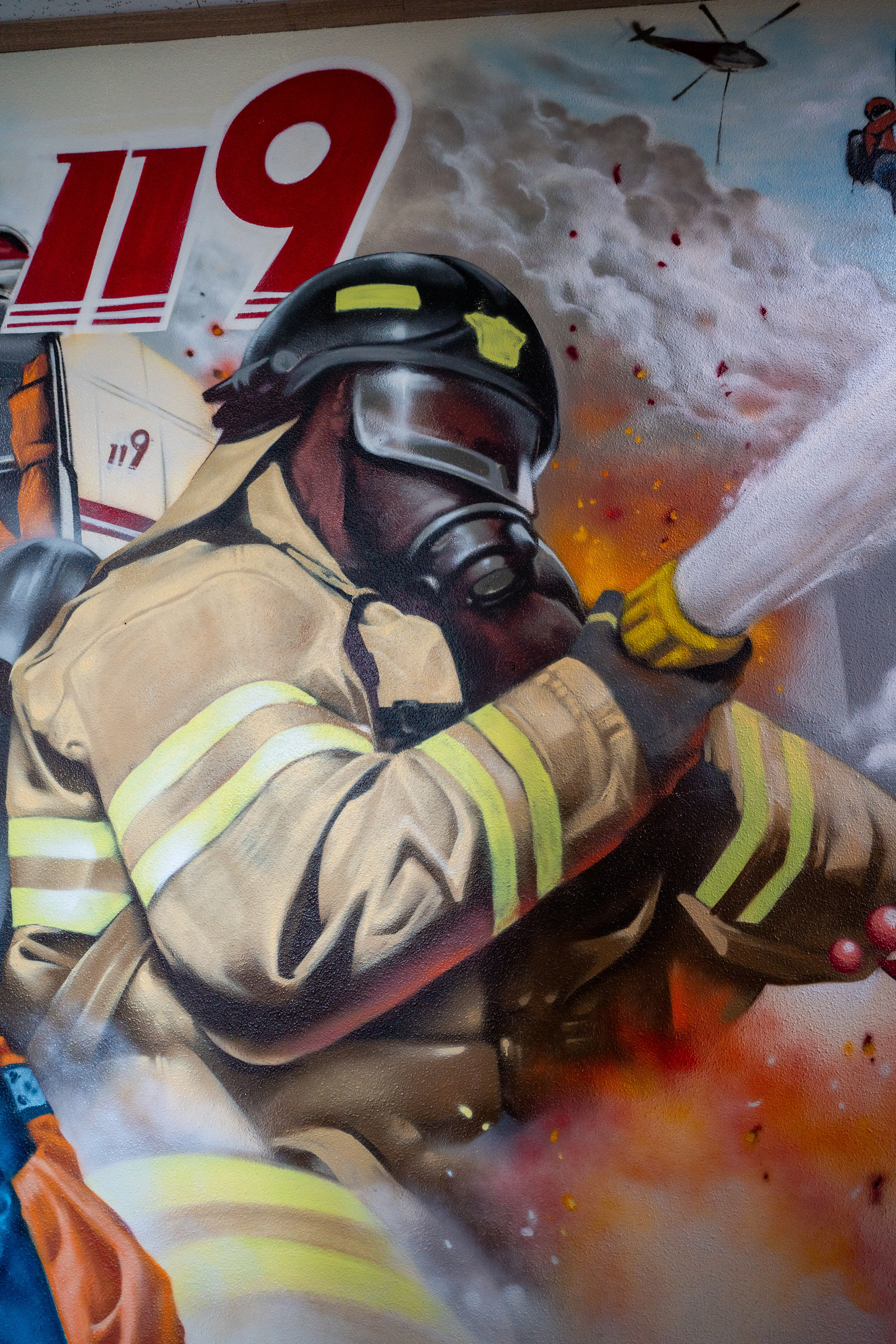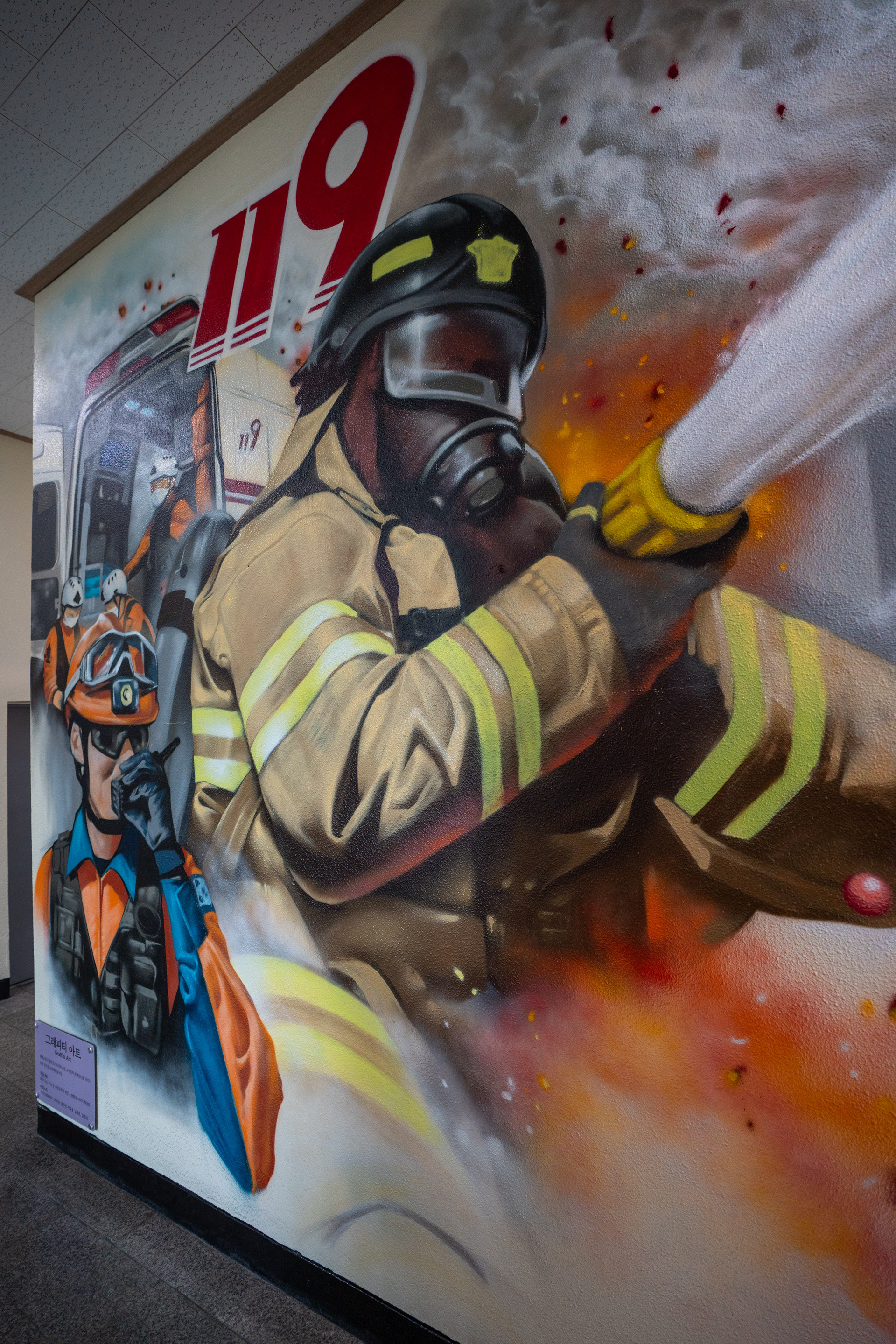 Heroic graffiti murals adorning a firehouse, Pyeongtaek, Korea 2024