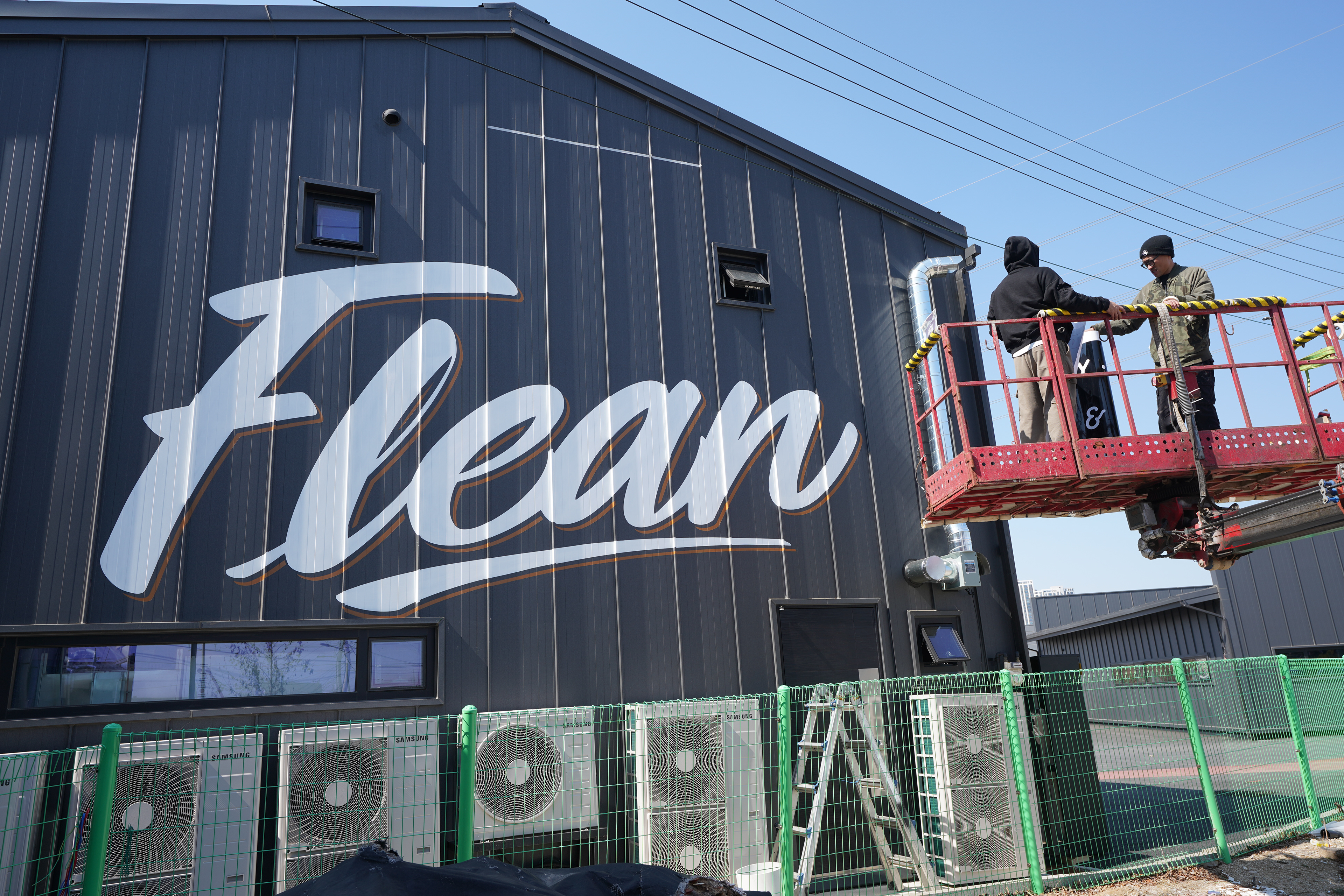 Rather than foregrounding graffiti as pure expression, the Flean project is better understood as an exterior lettering installation shaped by the functional needs of the space. The goal was to create a result large enough, clear enough, and durable enough to replace conventional signage, and the decision to adapt the process to the condition of the new zinc panel surface was key to that stability. This project documents how BMBRS works not simply by filling walls, but by designing outcomes through an understanding of site purpose, material conditions, and long-term maintenance.