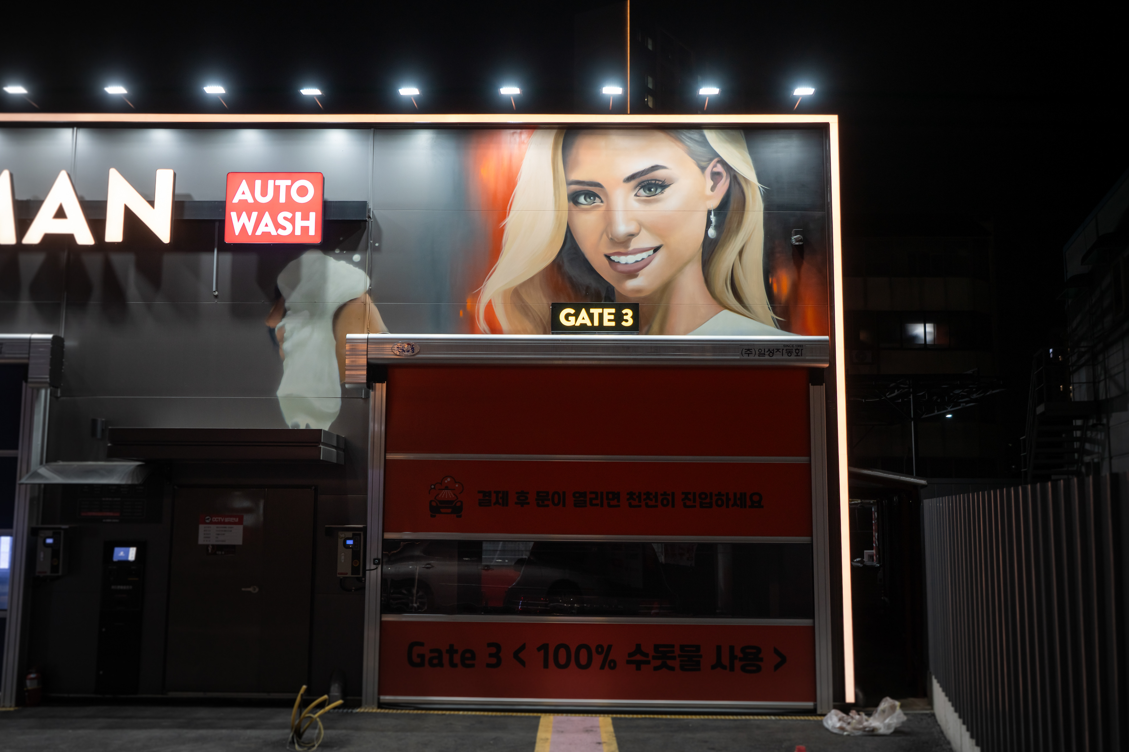 Car wash entrance sign artwork, Cheonan, Korea 2025