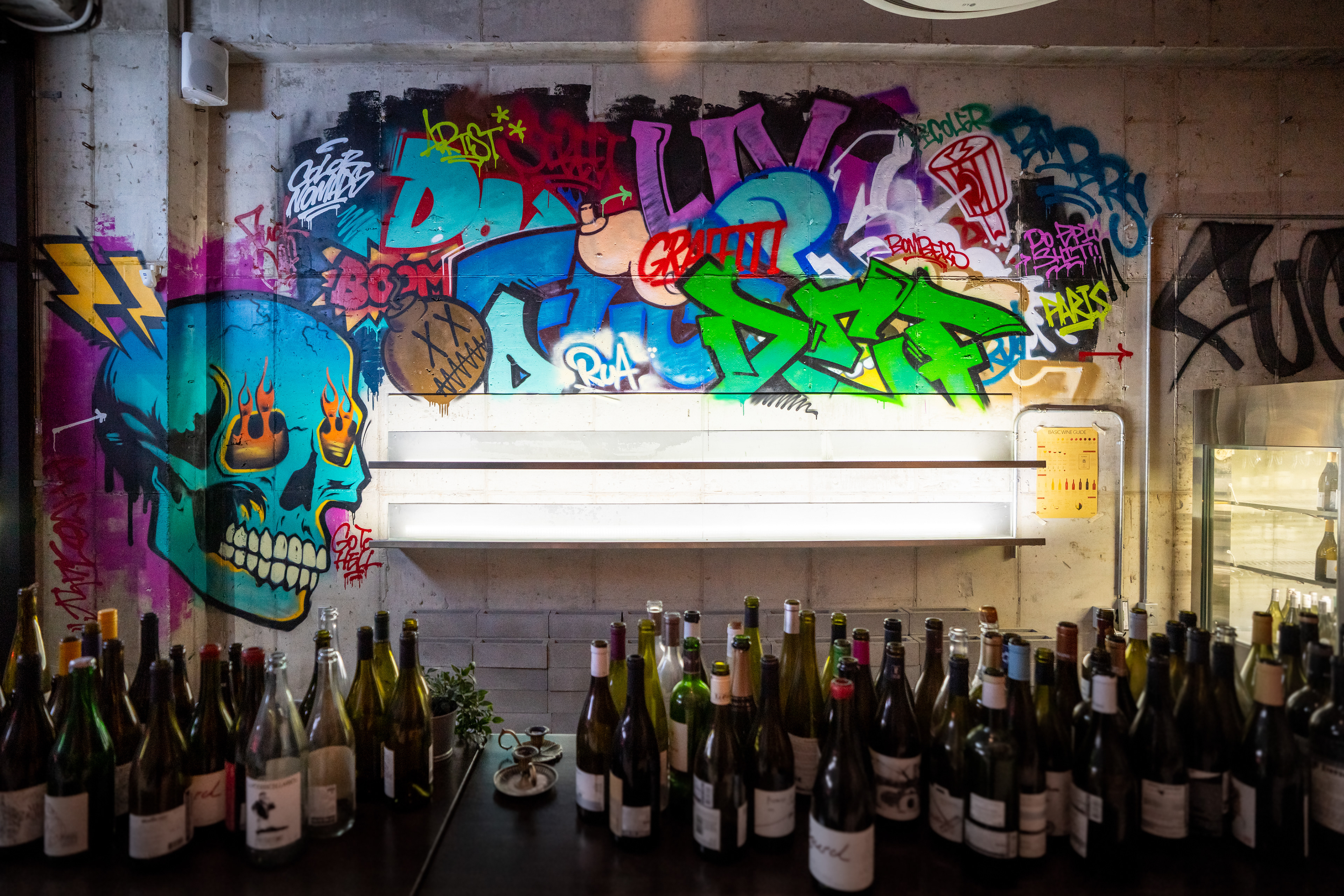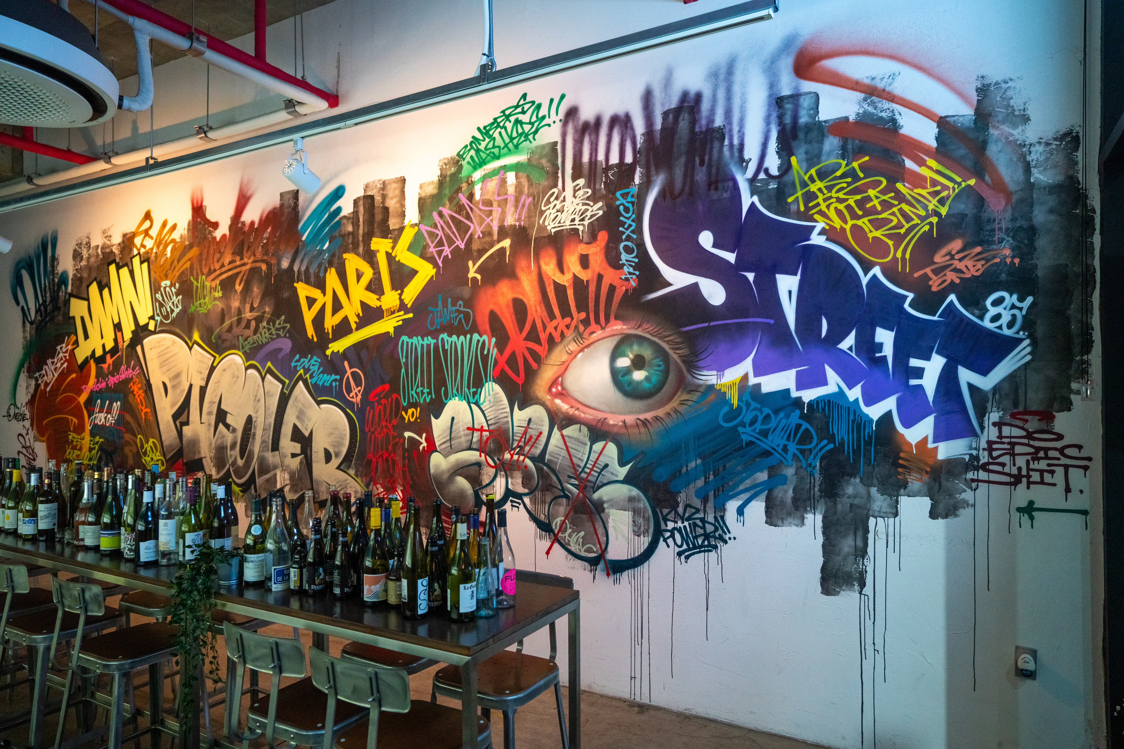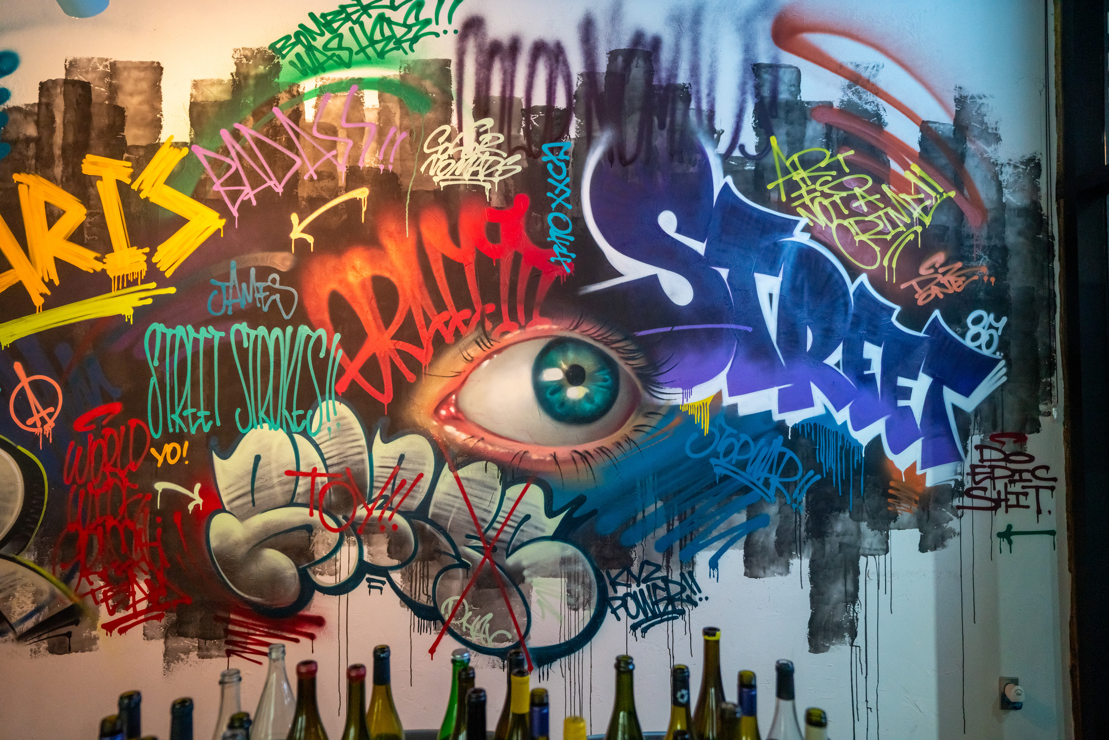 The completed space presents a cohesive scene where street graffiti energy merges seamlessly with the refined atmosphere of a wine bar. This project demonstrates how graffiti can function as a defining language of space rather than mere decoration. It serves as a visual record, archival material, and a reference point for future interior and public art projects.