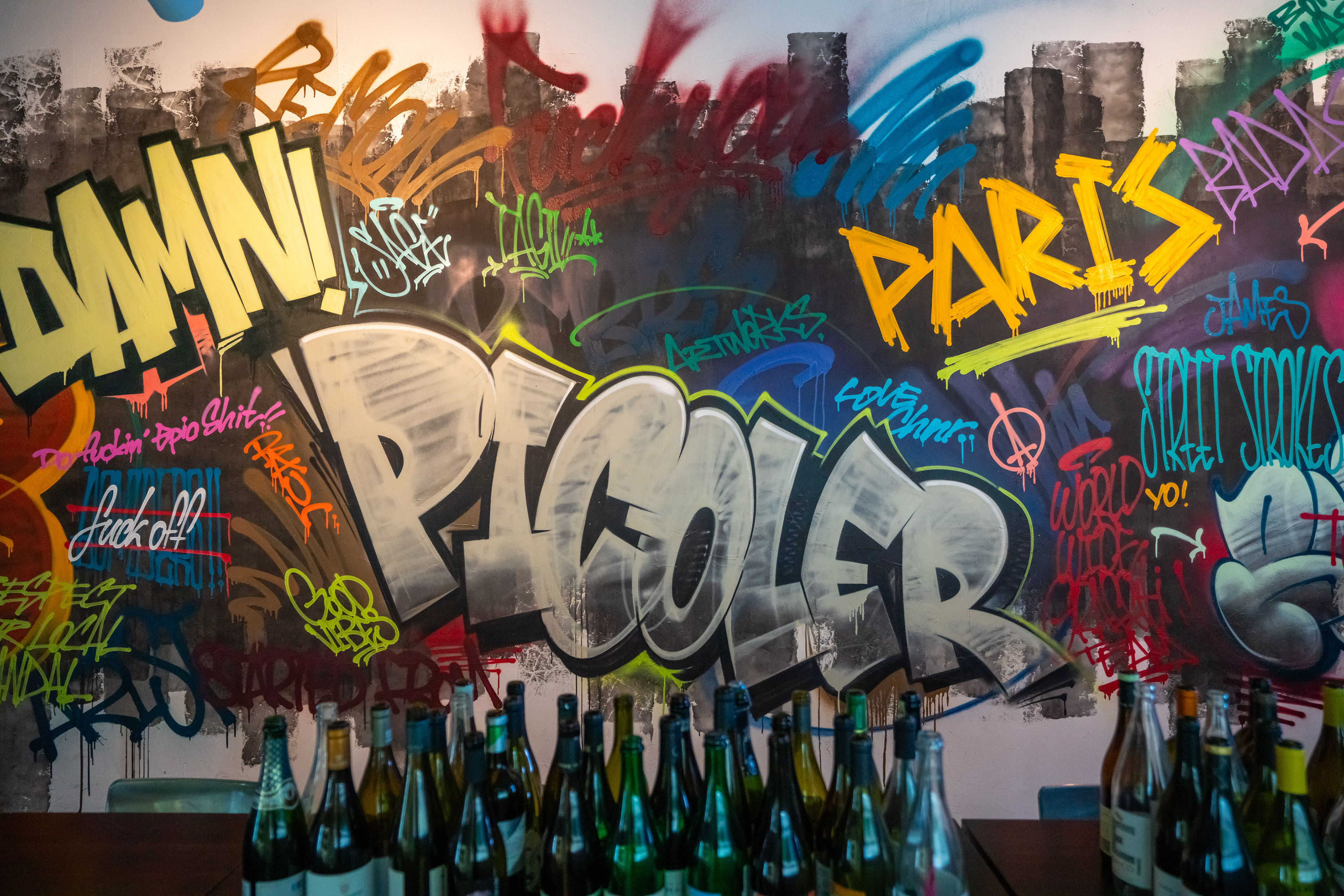 This project is an interior graffiti installation for PICOLER Wine Bar in Ingye-dong, Suwon. The work introduces the layered textures and visual language of street graffiti into an already refined commercial interior, aiming to redefine the identity of the space without disrupting its function.