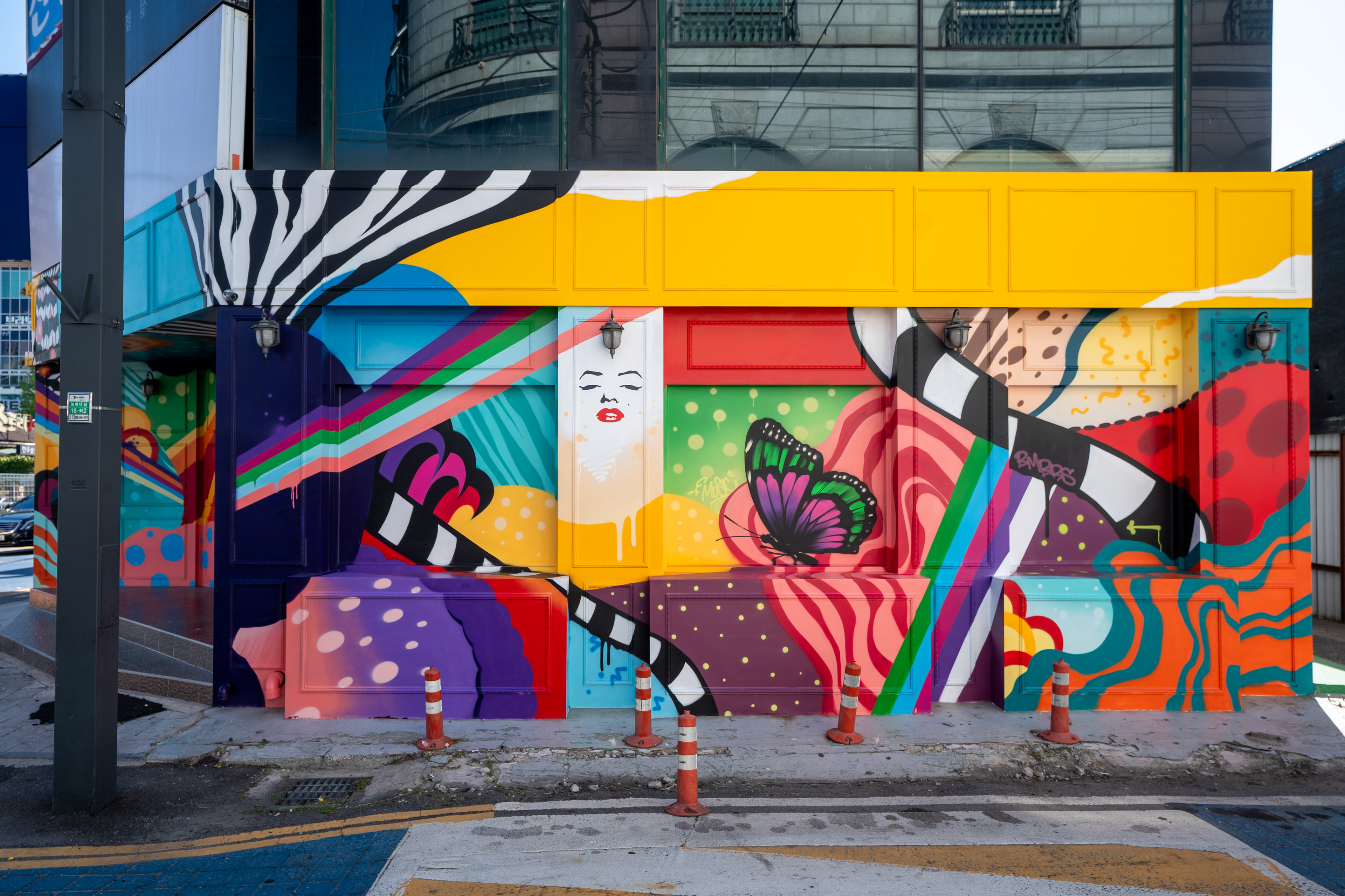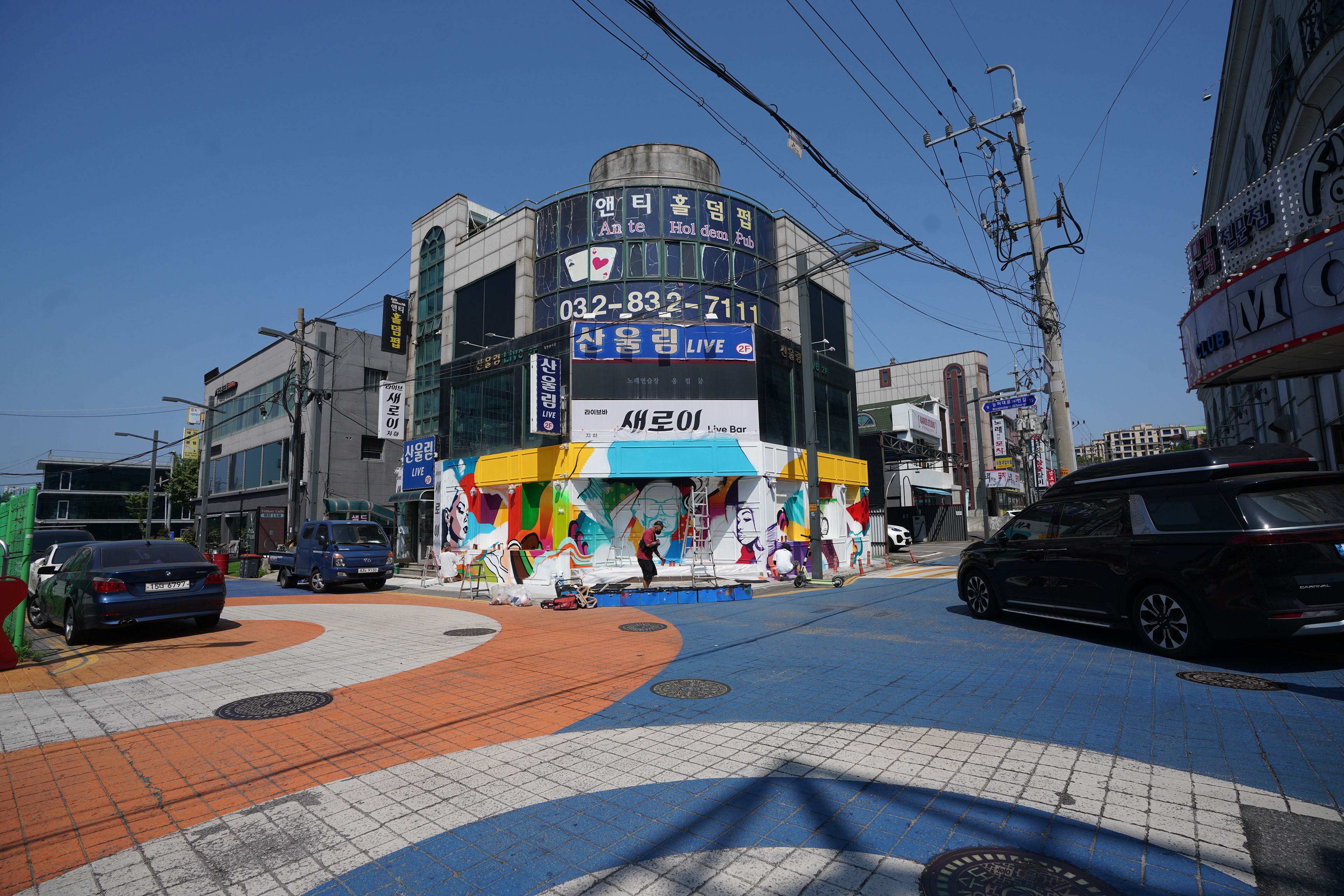 본 프로젝트는 인천 송도 구시가지 사거리 코너에 위치한 노래방 외벽을 대상으로 진행된 그래피티 커미션 작업이다.