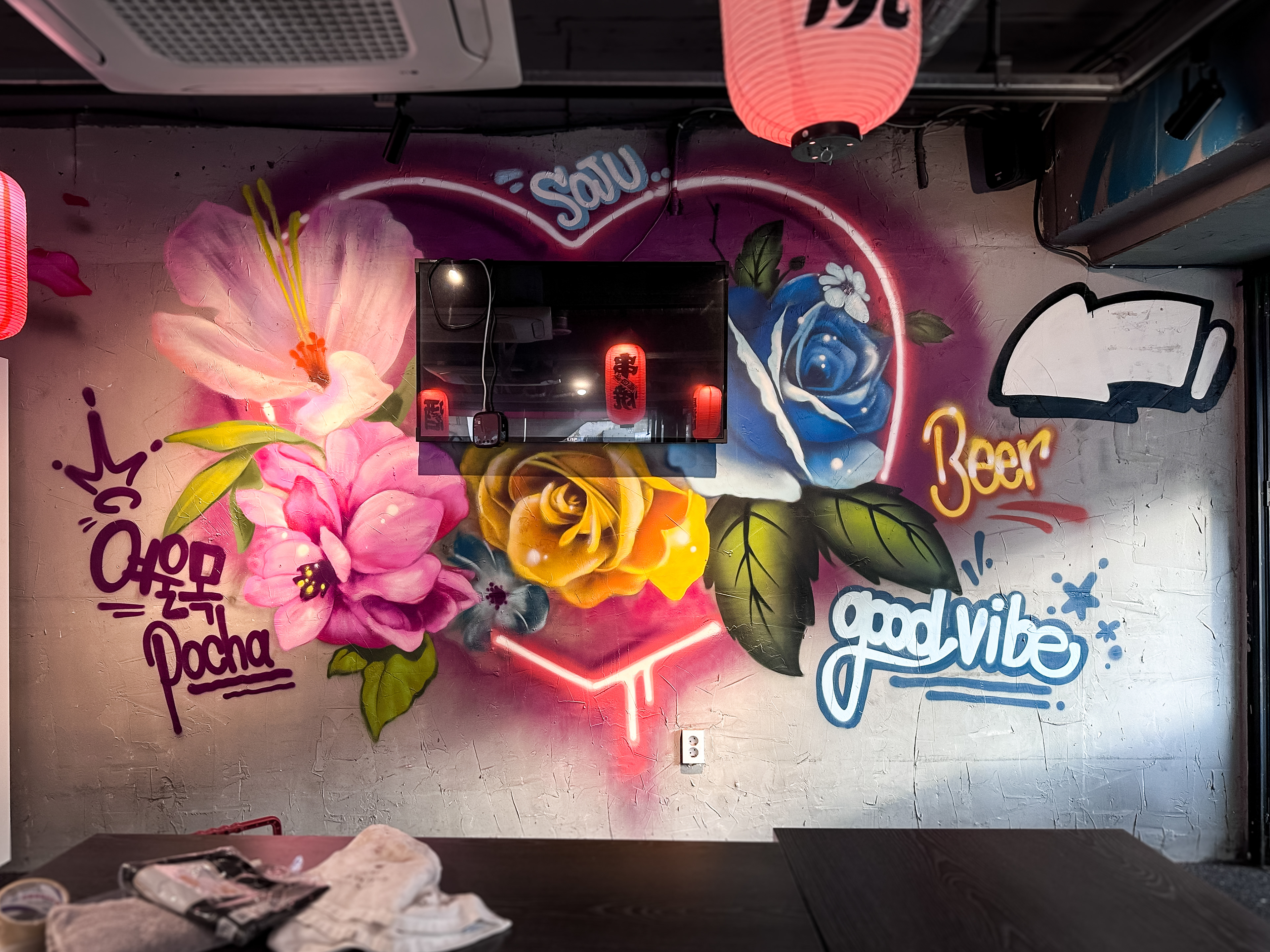 Unique graffiti artwork for Yeoulmok Pocha, a trendy Korean pub in Garak-dong, Korea 2023